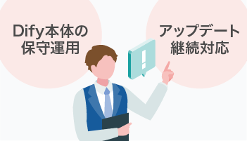 機能改善やセキュリティ強化のために必要な、Difyのバージョンアップにも対応しています。定期・不定期どちらでも対応が可能です。